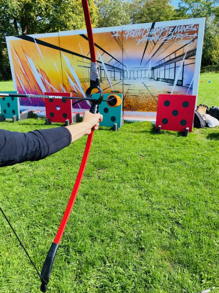 Le battle archery, appelé aussi archery tag est un concept de jeu original qui se pratique en équipe. Ludiques et franches rigolades sont toujours au rendez-vous. Ajoutez-y un peu de stratégie, de cohésion, de dextérité afin de s’affronter dans différents scénarios. Les deux équipes s’affrontent l’arc à la main avec des flèches (extrémité en mousse) et tentent de toucher les adversaires ou de faire tomber les disques de la cible adverse.